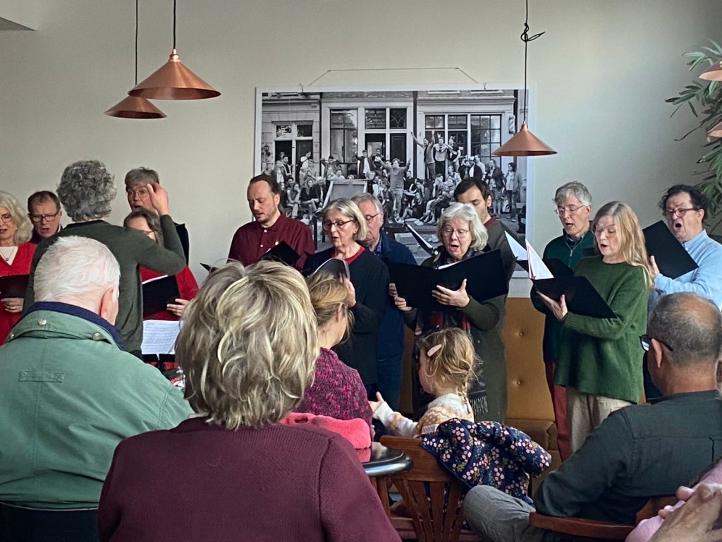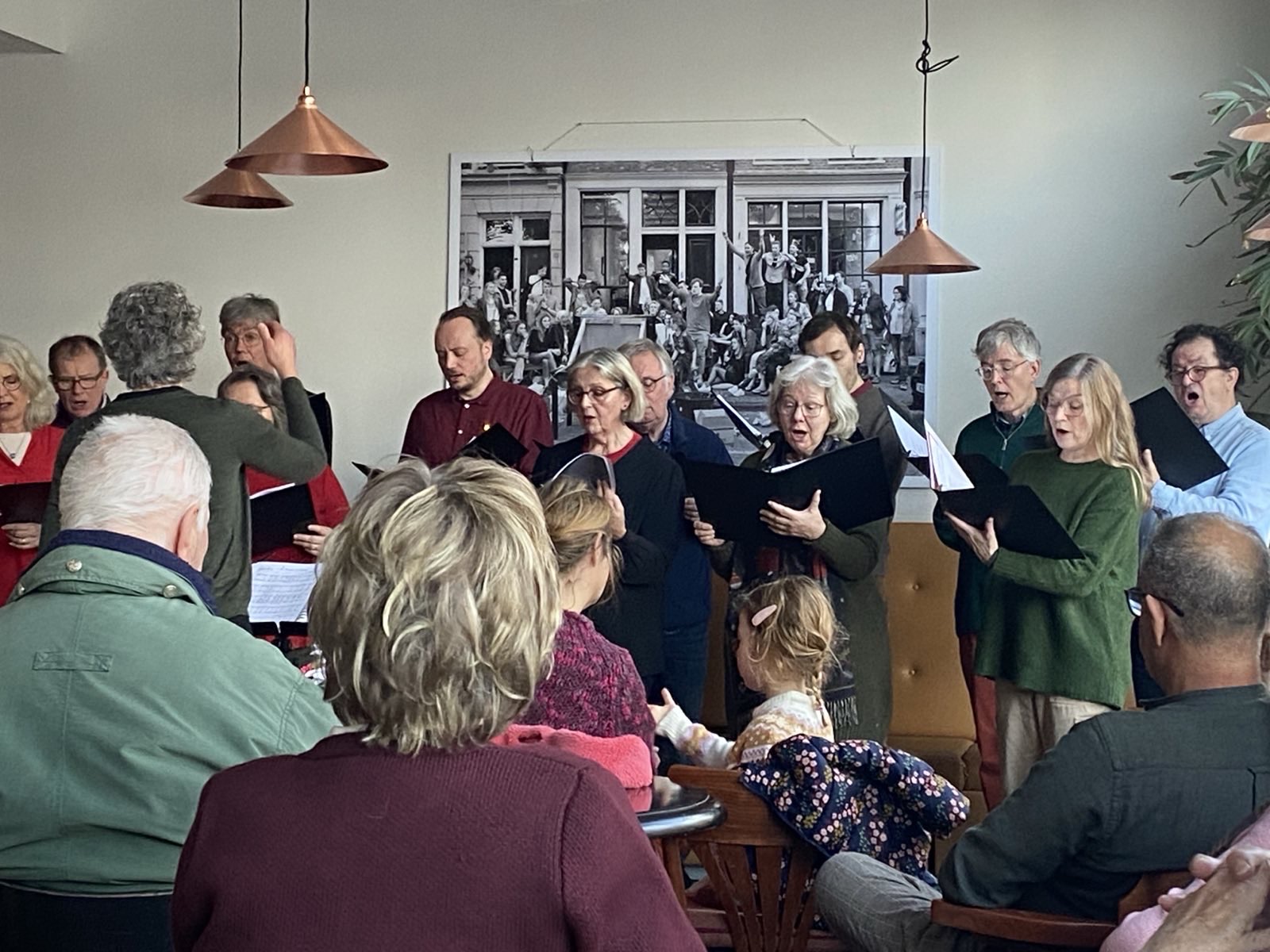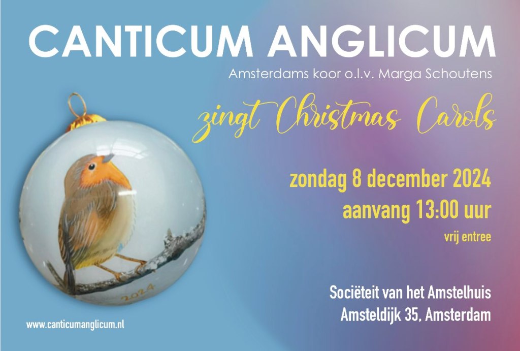 Zondag 8 december zong Canticum Anglicum Christmas Carols in de sociëteit van Het Amstelhuis op de Amsteldijk 35.