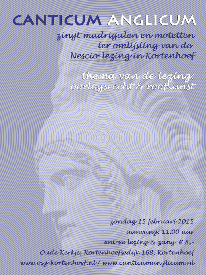Op zondag 15 februari zingt Canticum Anglicum ter omlijsting van de Nescio-lezing in Kortenhoef. Deze lezingenreeks wordt georganiseerd door de Oecumenische Streek Gemeente Kortenhoef.
