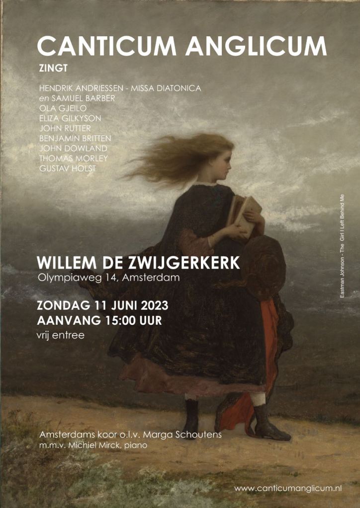 Canticum Anglicum zingt maandelijks in de mis van de Vredeskerk. Daarnaast bereiden wij ons momenteel voor op een kleine uitvoering in Sociëteit het AMSTELhuis op 21 april en een concert op 9 juni in het Witte Kerkje in Holysloot.